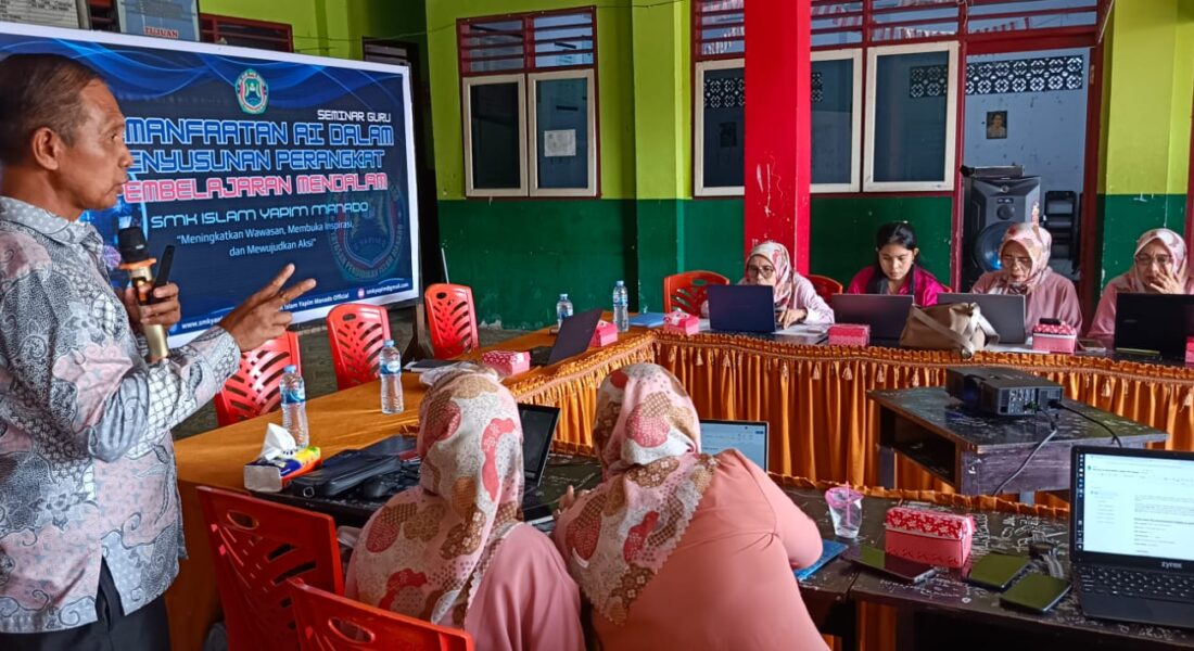 Manado, 24 Januari 2026 — SMK Islam Yapim Manado menyelenggarakan kegiatan In House Training (IHT) dengan tema “Pemanfaatan Teknologi AI dalam Penyusunan Perangkat Pembelajaran Mendalam”. Kegiatan ini bertujuan untuk meningkatkan kompetensi guru dalam mengintegrasikan teknologi kecerdasan buatan (AI) ke dalam proses perencanaan dan pengembangan perangkat pembelajaran yang inovatif dan relevan dengan kebutuhan abad ke-21.